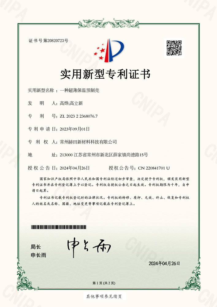 常州赫田新材料科技有限公司成立于2017年,公司总部坐落于江苏省常州市,是一家专注于绿色绝热保温材料/环保隔声降噪材料/轻量化复合材料的研发、生产和应用的国家高新技术企业。赫田从聚异氰脲酸酯深冷绝热材料出发,历经发展,已经成为国内知名的绝热节能工程整体结构方案提供商。