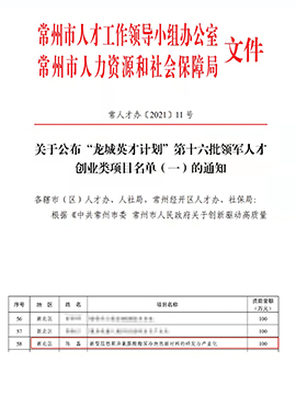 赫田新材申报项目成功入选“龙城英才”第十六批领军人才创业类项目名单